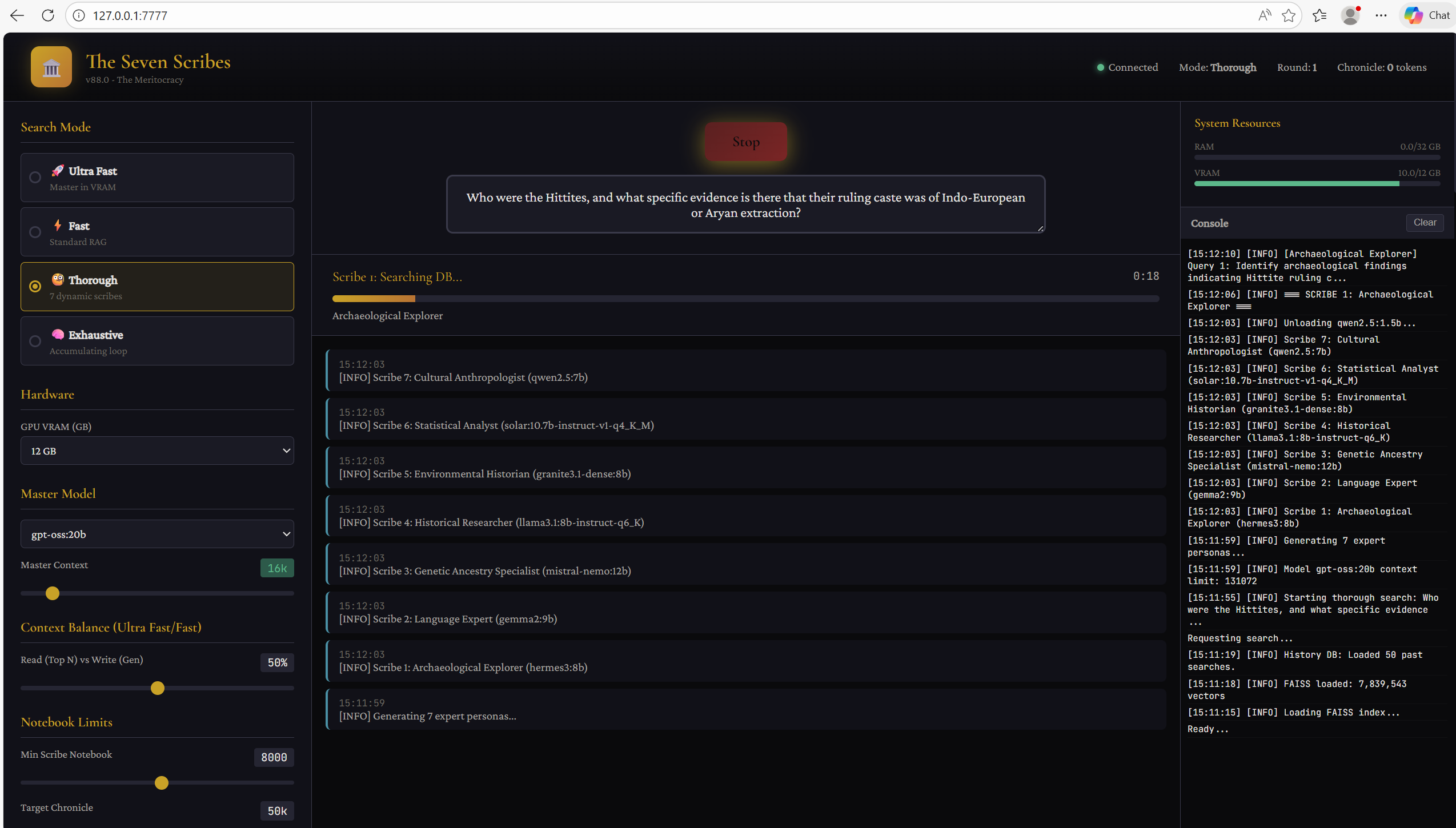 I’ve created3 a program I’ve chosen to call ‘the Seven Scribes’. Each time I launch a search query, assuming I choose ‘exhaustive’ mode as opposed to ‘fast’, seven different ‘personalities’ or areas of expertise are created, according to the nature of the query - and each of these archetypal personalities/experts is grafted on to a different LLM..